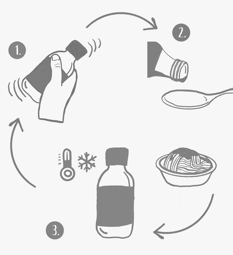 Muitas pessoas optam por tomar o óleo NORSAN puro, utilizando uma colher. No entanto, o óleo também pode ser incorporado na sua alimentação de forma simples e prática, servindo como um ingrediente “normal” na cozinha. Pode, por exemplo, adicionar o óleo diretamente ao seu sumo de laranja, batido ou molho de salada, tornando a ingestão de Ómega-3 ainda mais fácil e saborosa.